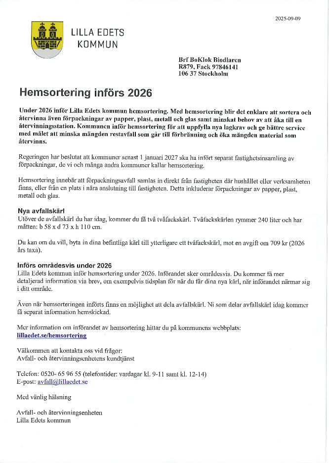 Hemsortering införs 2026